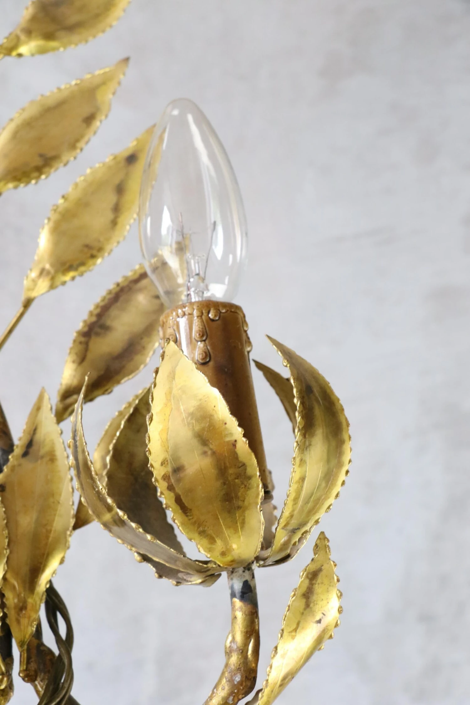 Superb wall lamp with gilded brass leaves by Florart, made in the 60s.