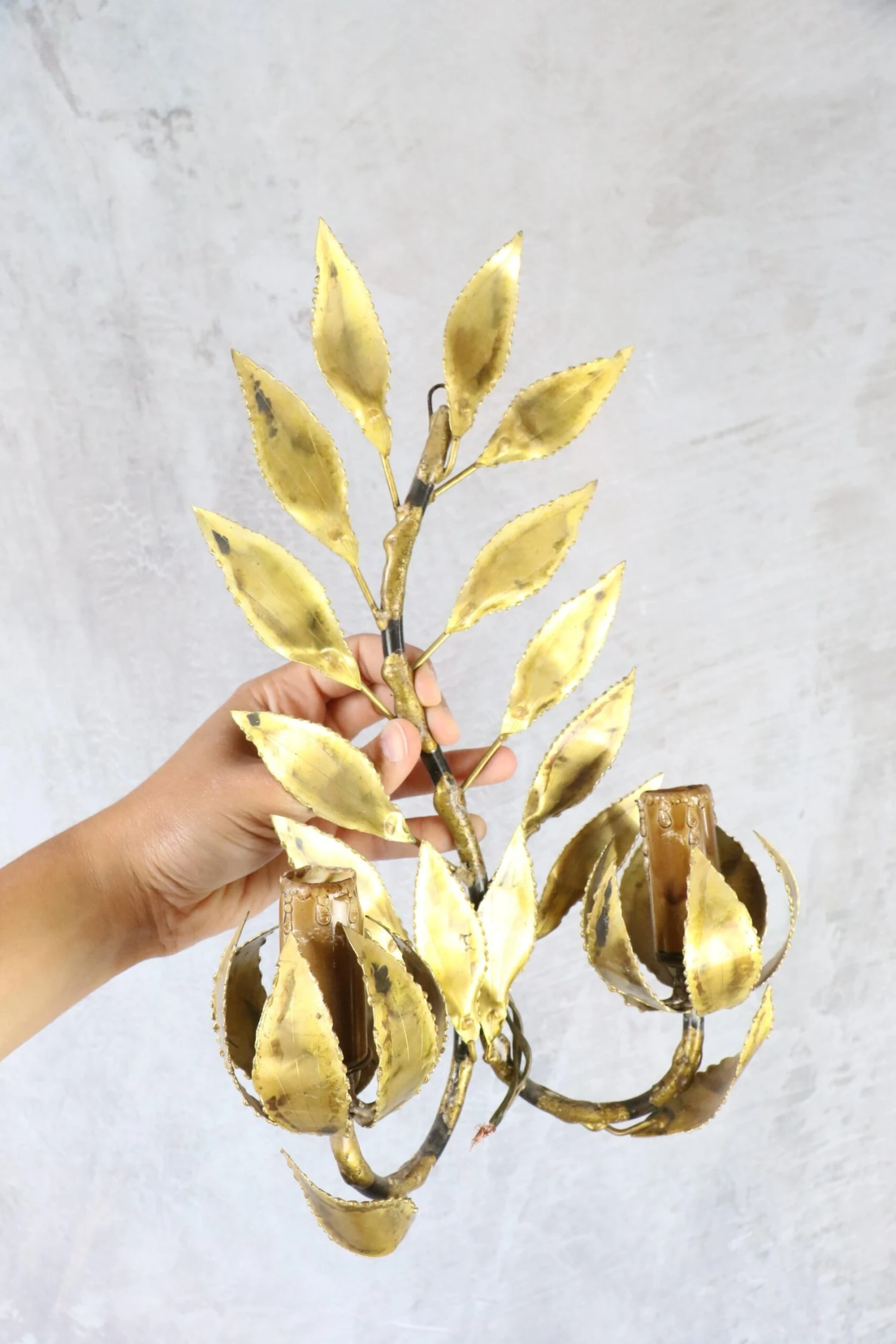 1960 Maison FlorArt Mid-century brass foliage sconce
