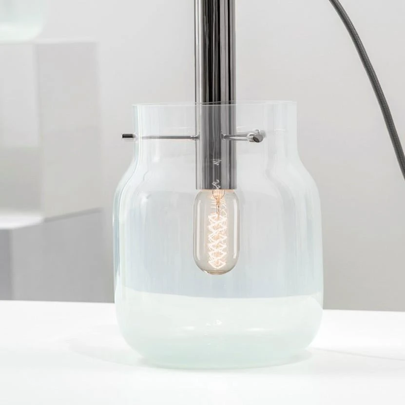 A significant component of our work is blowing glass into a colour gradient. The wide range of fresh gradient colours is a distinctive feature of the Bandaska vase from our collection. It draws inspiration from traditional milk containers, well-known in Czech village households, and their elegant lines are now coming into modern homes in the form of our glass vases and lights.