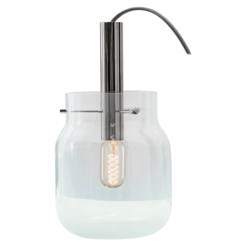 Hand-blown into beech wood moulds, Bandaska Lights is based on the highly popular Bandaska Vase collection. DECHEM‘s signature shape turns into an elementary suspended lamp whose crystal clear or colour gradient glass shades are complemented by copper, brass or anthracite coated metal fixtures.