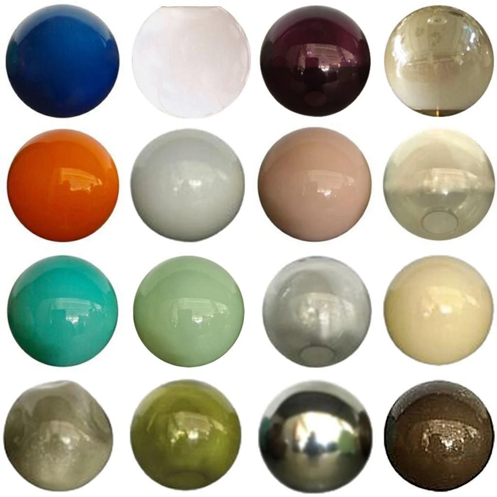Height of the central pole can be shortened or lengthened to requirements. Customizable in finishes, polished or satin glass, and sphere glass colors as per photograph.