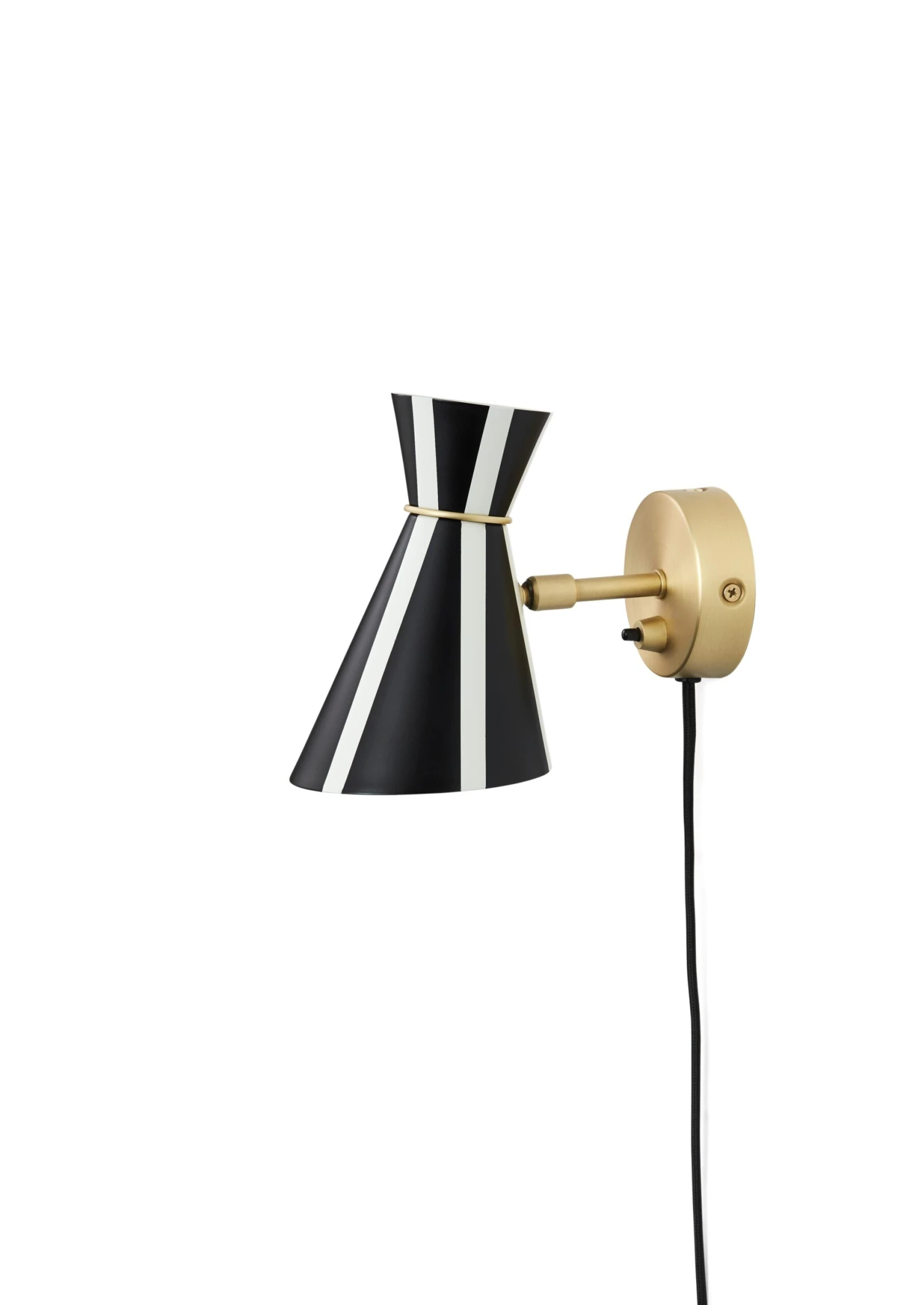 An exquisite little wall lamp with a rigorous design, designed in the 1950s by the internationally acclaimed grand master of Danish lighting design, Svend Aage Holm-Sørensen. The lamp takes up very little space and is perfect for a wide range of rooms, in which direct light will make it possible to read in bed or create atmospheric wall lighting in a living room, kitchen or hallway. Its combination with solid brass lends the wall lamp a classic look, and the brass ring on the light metal shade is an elegant detail. The wall lamp comes in two versions. There is a self-coloured model and a more eye-catching stripy model. The lamps come in Warm Nordic’s exclusive silky matt quality paint, which guarantees an extraordinarily beautiful and durable surface.