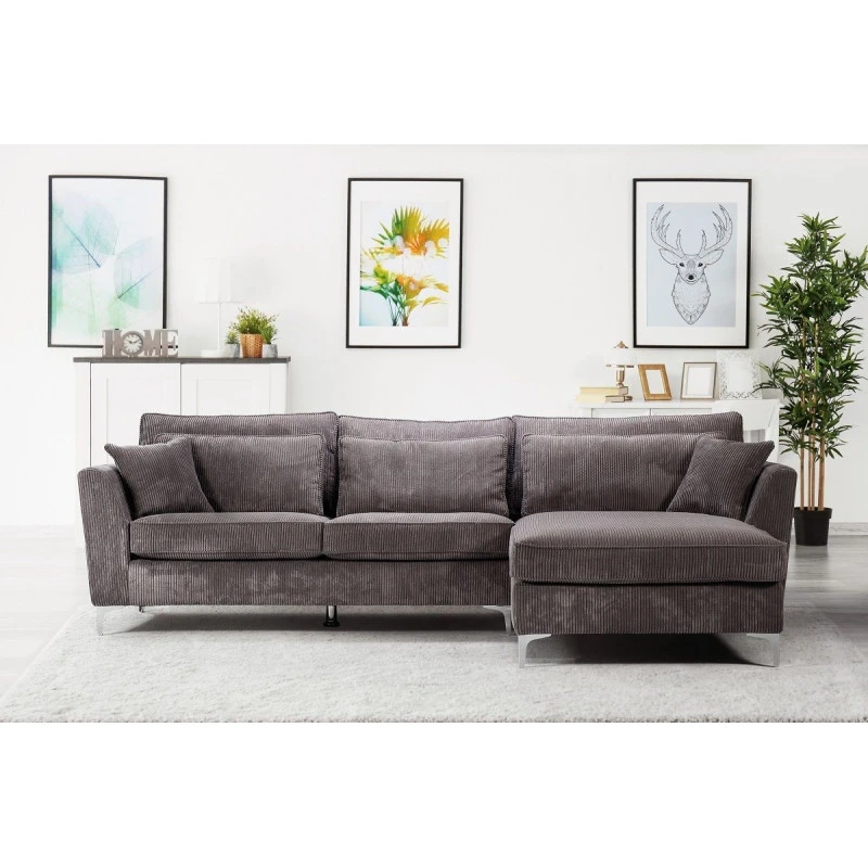 Canapé Angle Droit Isla Velours Côtelé Gris