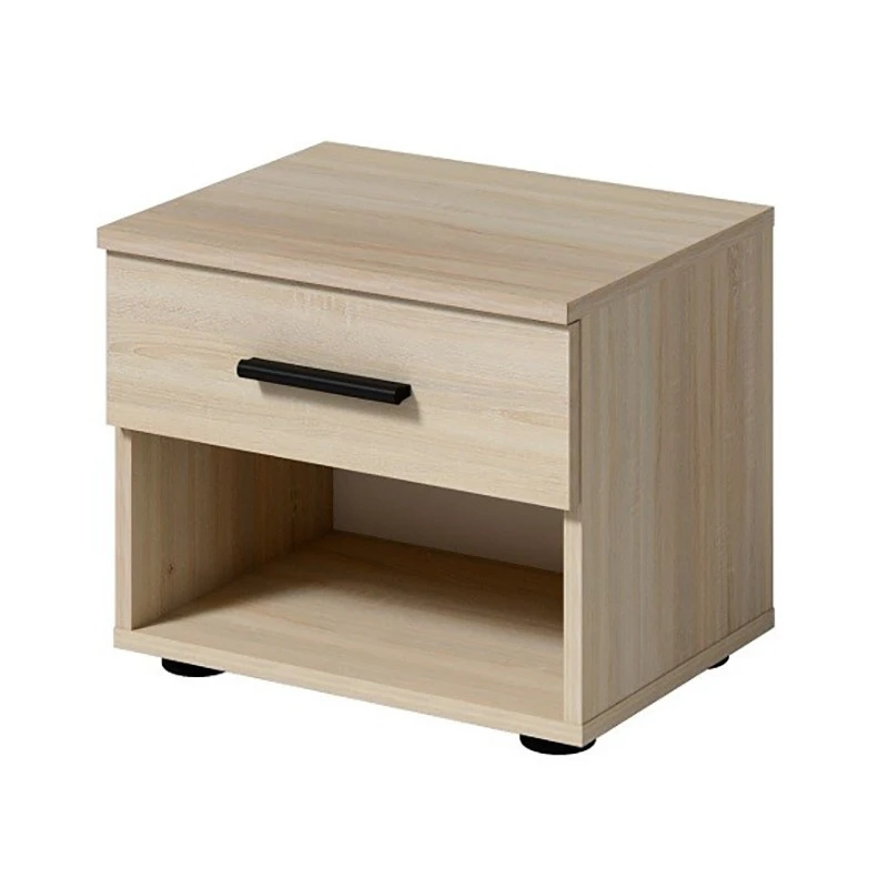 Chevet assorti au lit et à l’armoire de la collection. Chevet 1 tiroir + 1 niche. A monter soi-même.