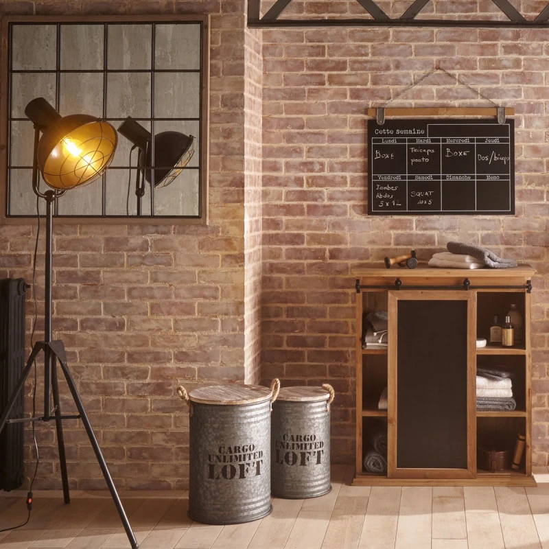 Lot de 3 coffres en formes de bidons gris métallisé de la marque Atmosphera. Adopter un style industriel grâce à ces bidons Loft avec leur plateau en sapin et leurs poignées en chanvre.