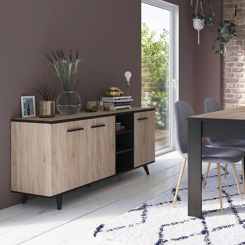 Bicolore naturel et noir, très moderne. Assorti au banc TV et à la table basse du même nom.