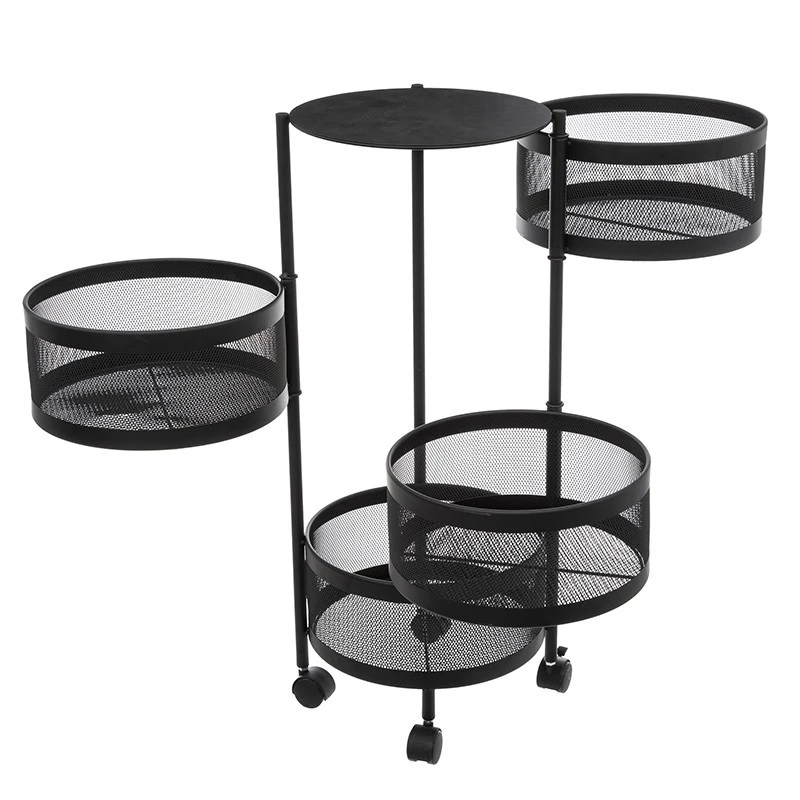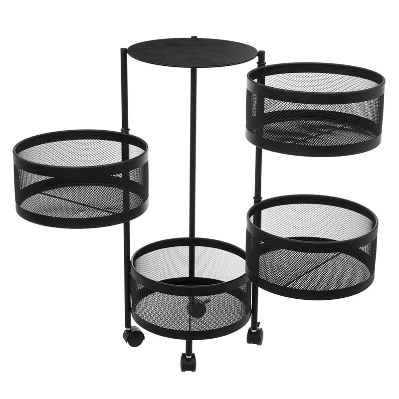 Pratique, esthétique et maniable, découvrez la desserte ronde 4 paniers en métal noir Mayaj de la marque 5Five.