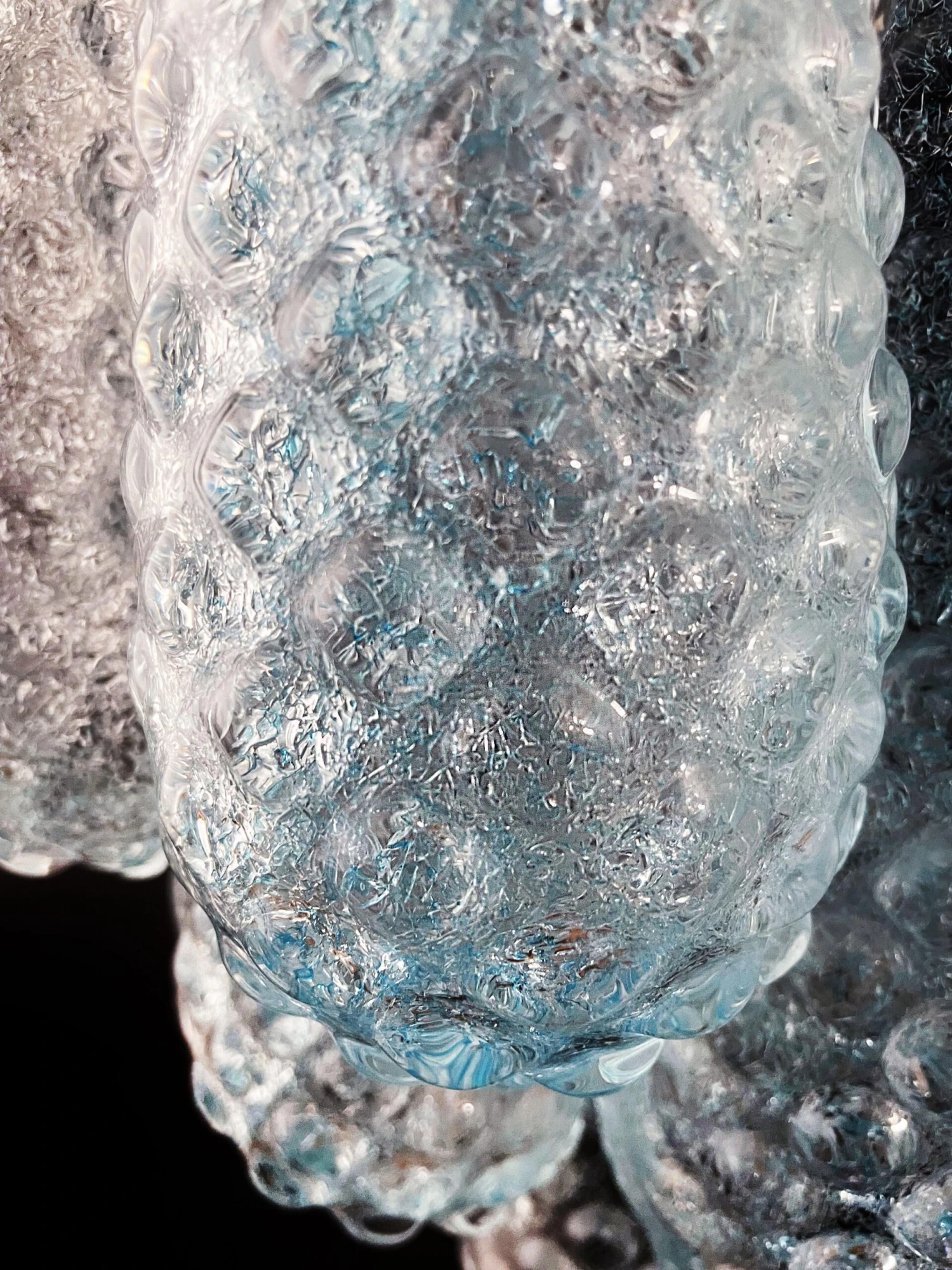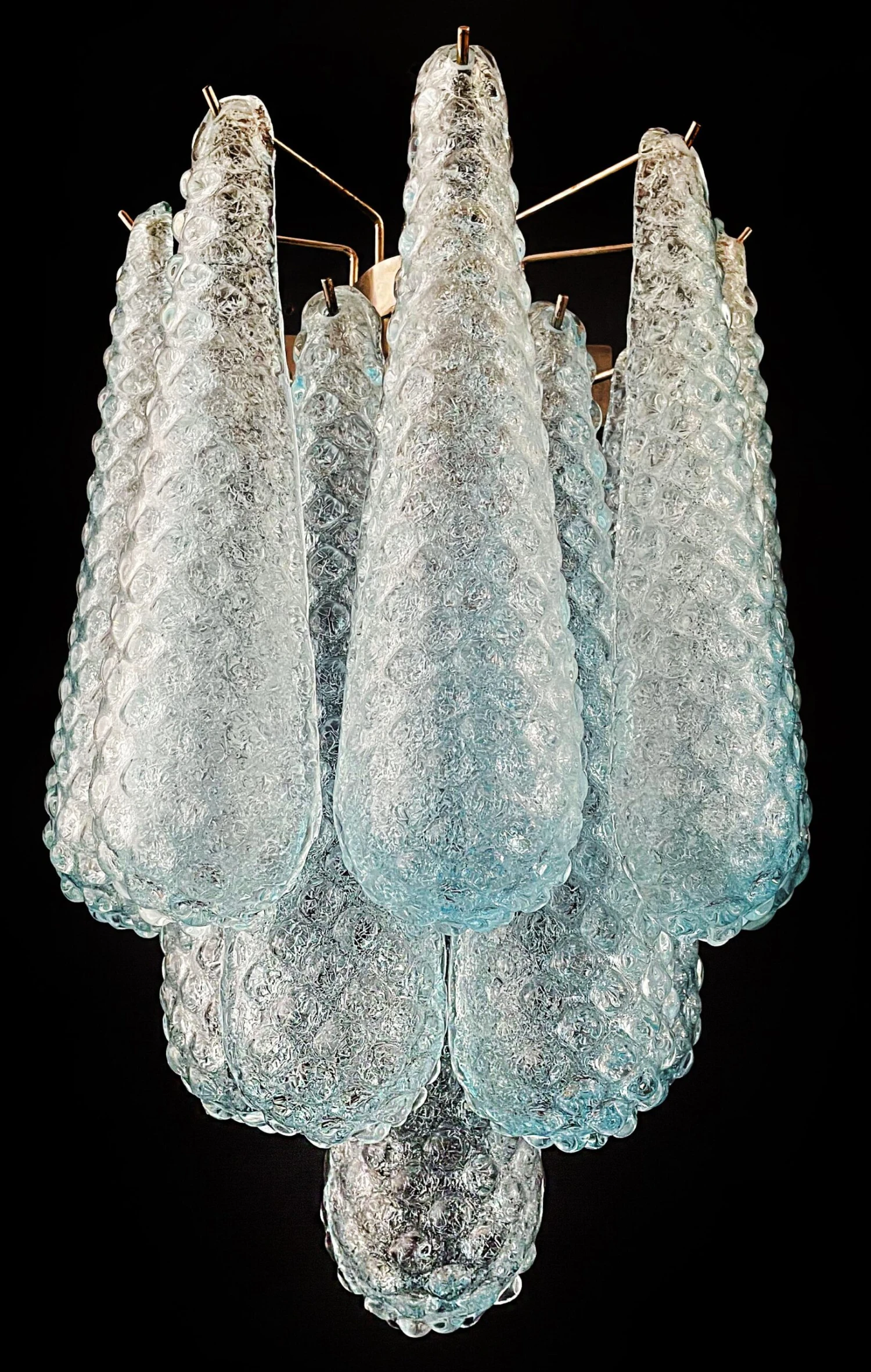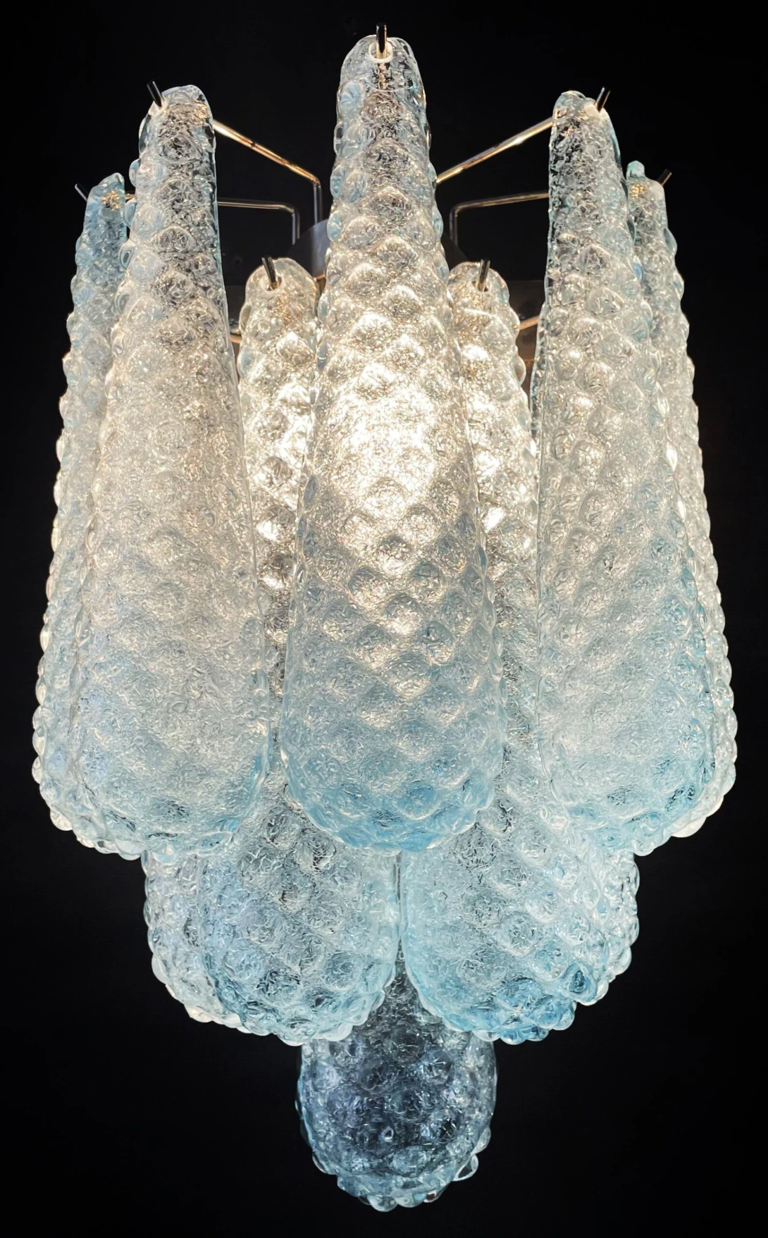 Fantastic pair of vintage Murano wall sconce made by 10 blue glass petals (transparent crystal, smooth outside, with crystal powder and then rough inside) in a chrome frame.