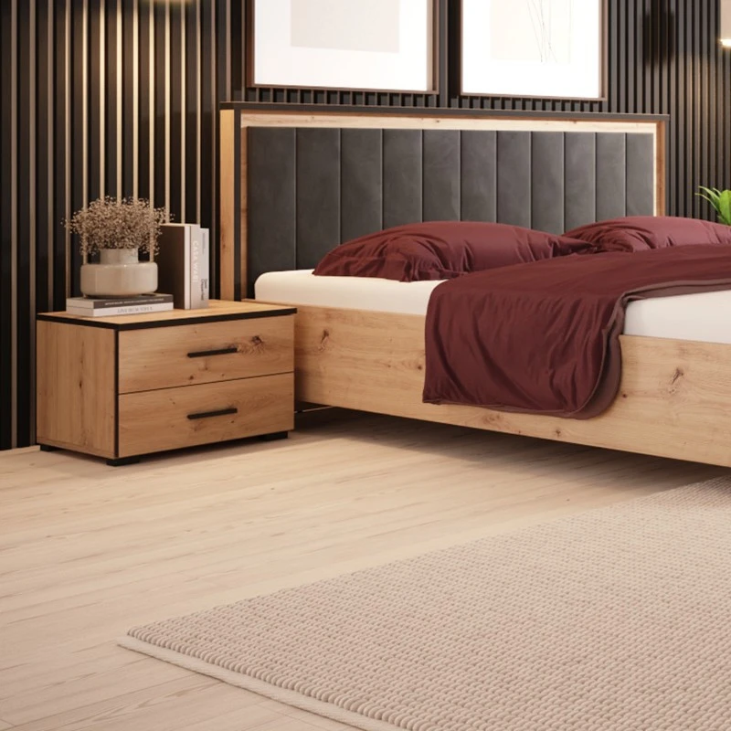 Ensemble De 2 Chevets 2 Tiroirs Nantes Noir Et Bois
