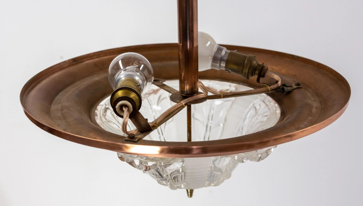 Luminaire made circa 1940 in the manufacture of Jean Gauthier. It was situated in Ezanville, near Paris, that is why JeanGauthier signed his works Ezan after 1930.