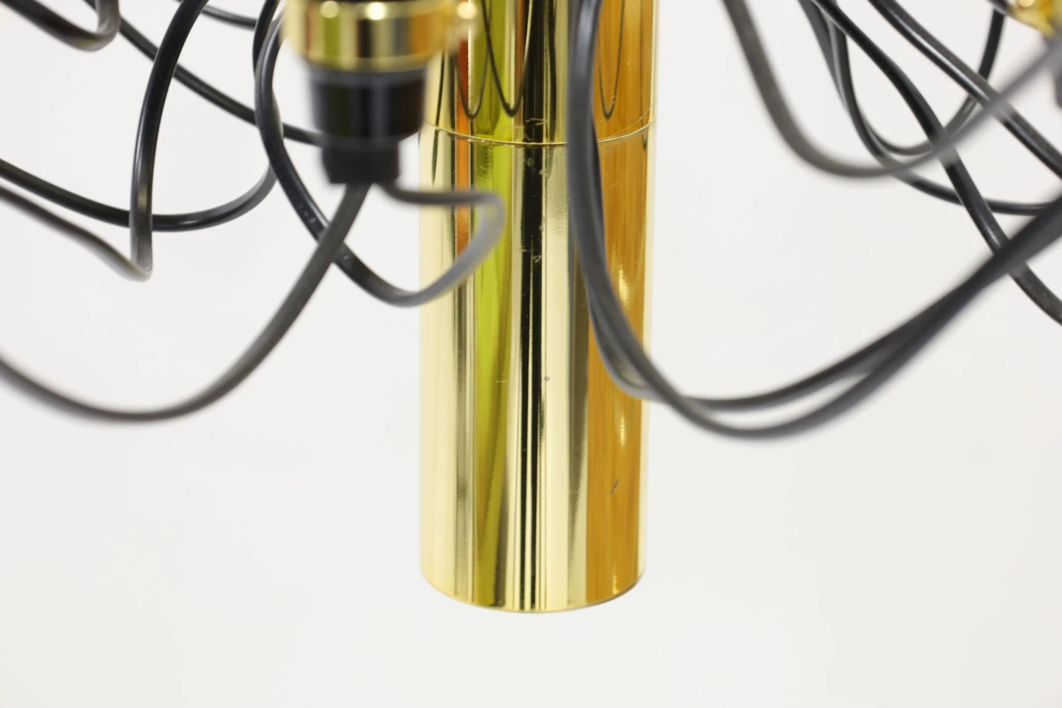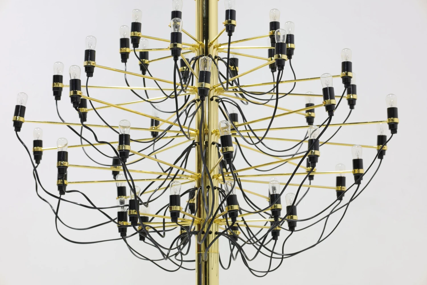 By Flos: Since 1958, this iconic Gino Sarfatti design has served as an ultra-modern representation of the traditional midcentury chandelier. Every detail of this state-of-the-art ceiling light is exceptional, from the mirror-polish finish of its main steel structure to the way each bulb is fitted with its own horizontal arm and the graceful wiring meanders down the stem. The Mod 2097 by Gino Sarfatti holds 50 incandescent bulbs, emitting indirect light. It features a ceiling fitting and includes a suspension cable. Inspiration behind the design: Renowned for his contribution to the modern architectural movement in lighting, creator Gino Sarfatti designed the Flos 2097 Chandelier in accordance with his legendary utilitarianism and overall desire to create humble yet powerful pieces.