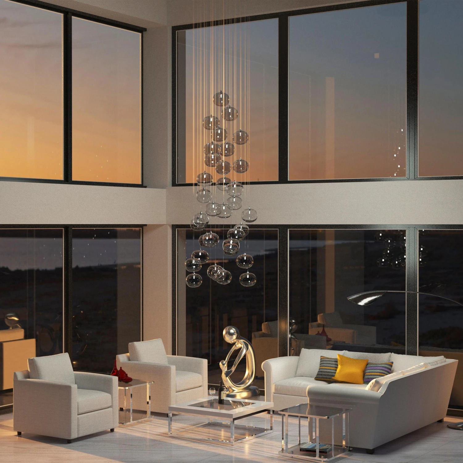 Imagine the enchanting scene as the light filters through each glass pendant, creating a stunning interplay of illumination and shadows. The cascading arrangement accentuates the height of your room, becoming a captivating focal point that leaves a lasting impression on all who enter.