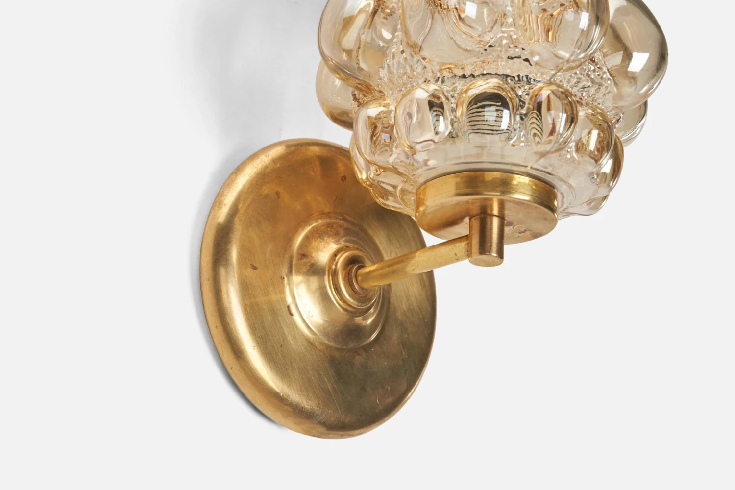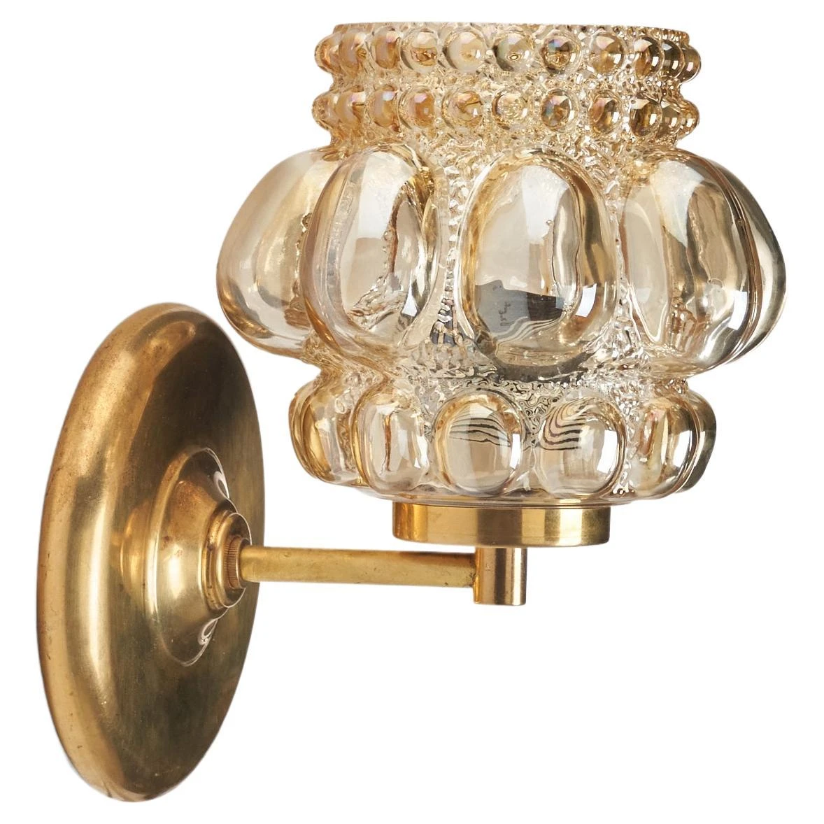 A brass and glass wall light designed by Helena Tynell and produced by Glashütte Limburg, Germany, 1960s.