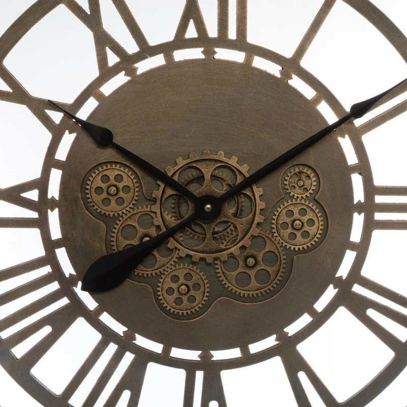 Créez votre tendance avec cette horloge grand modèle avec rouages apparents en mouvement.