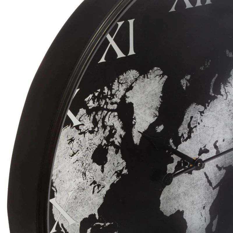 Horloge en métal avec motif mappemonde de la marque Atmosphera. Cette horloge de 57cm saura vous séduire par son design « carte du monde ».