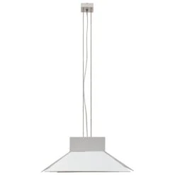 A multi-layered metal pendant light varnished in white, in very good, used condition. 1980s, Denmark.