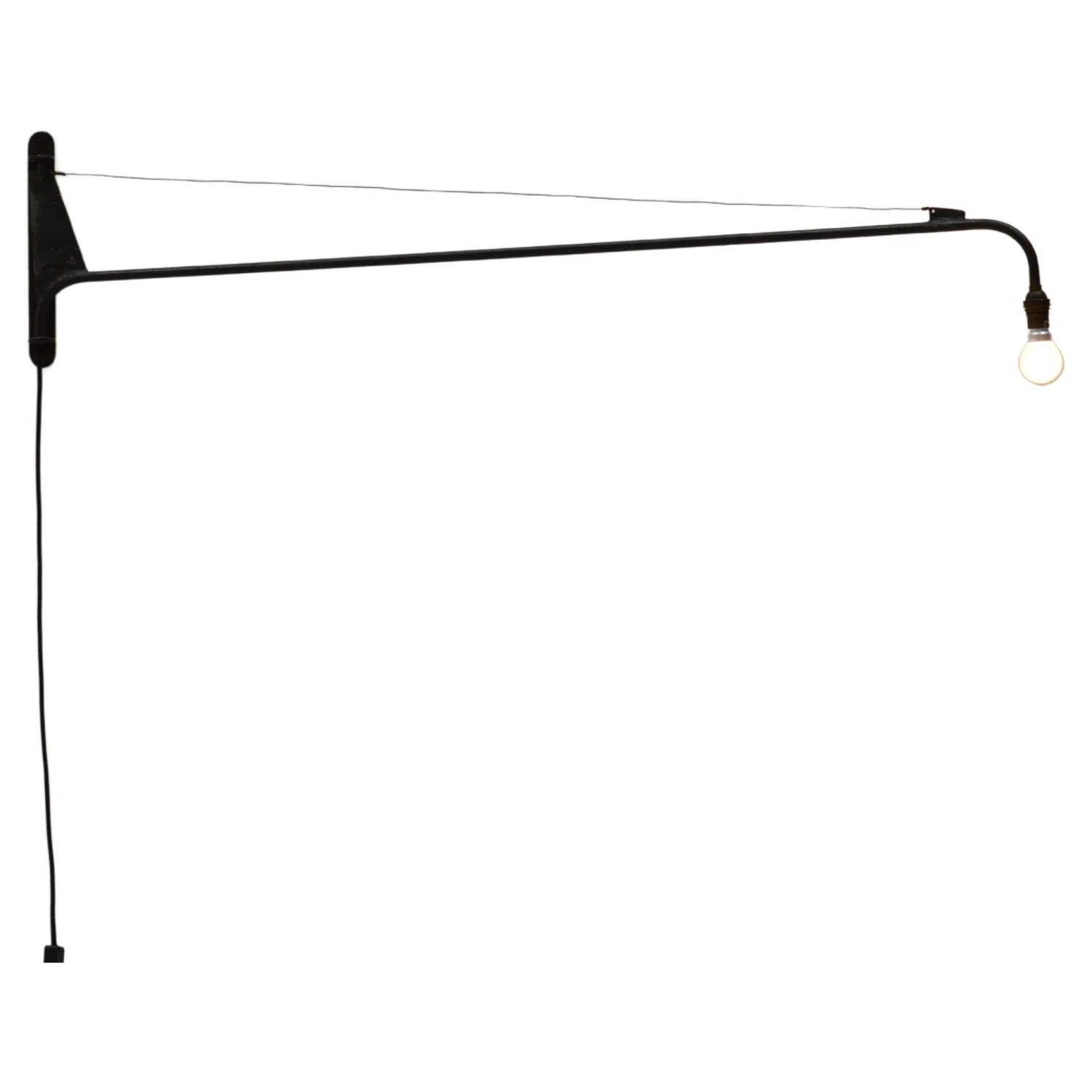 Large Swing-Jib lamp by Jean Prouvé, 1950s France. Minimalistic industrial design by one of the greatest designers, Jean Prouvé (1901 – 1984) Beautiful patinated and old Swing-jib lamp. Black metal with French brass bulb holder. Unfortunately no provenance. Holds a bayonet B22 bulb. Rewired with fabric cable and in good vintage condition.