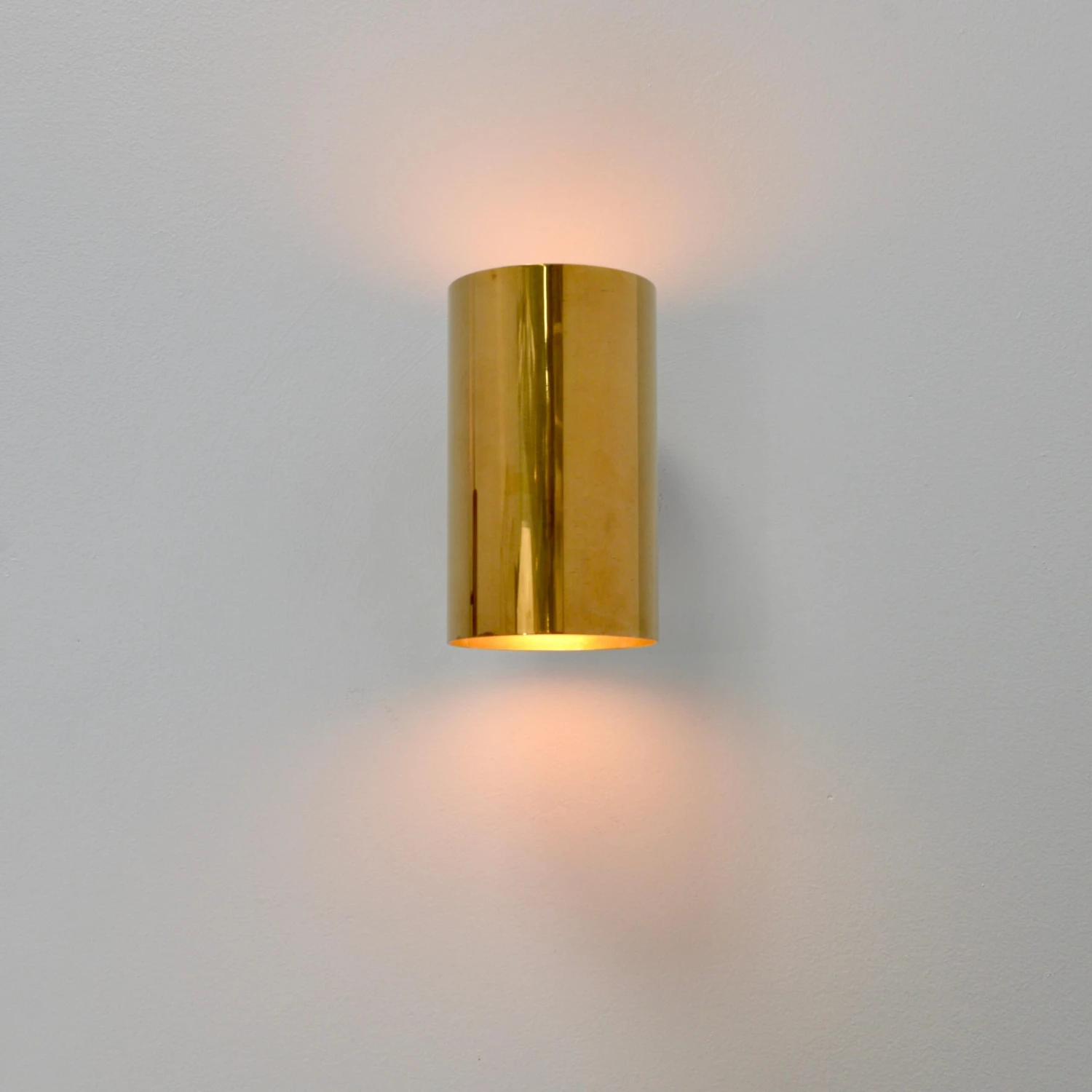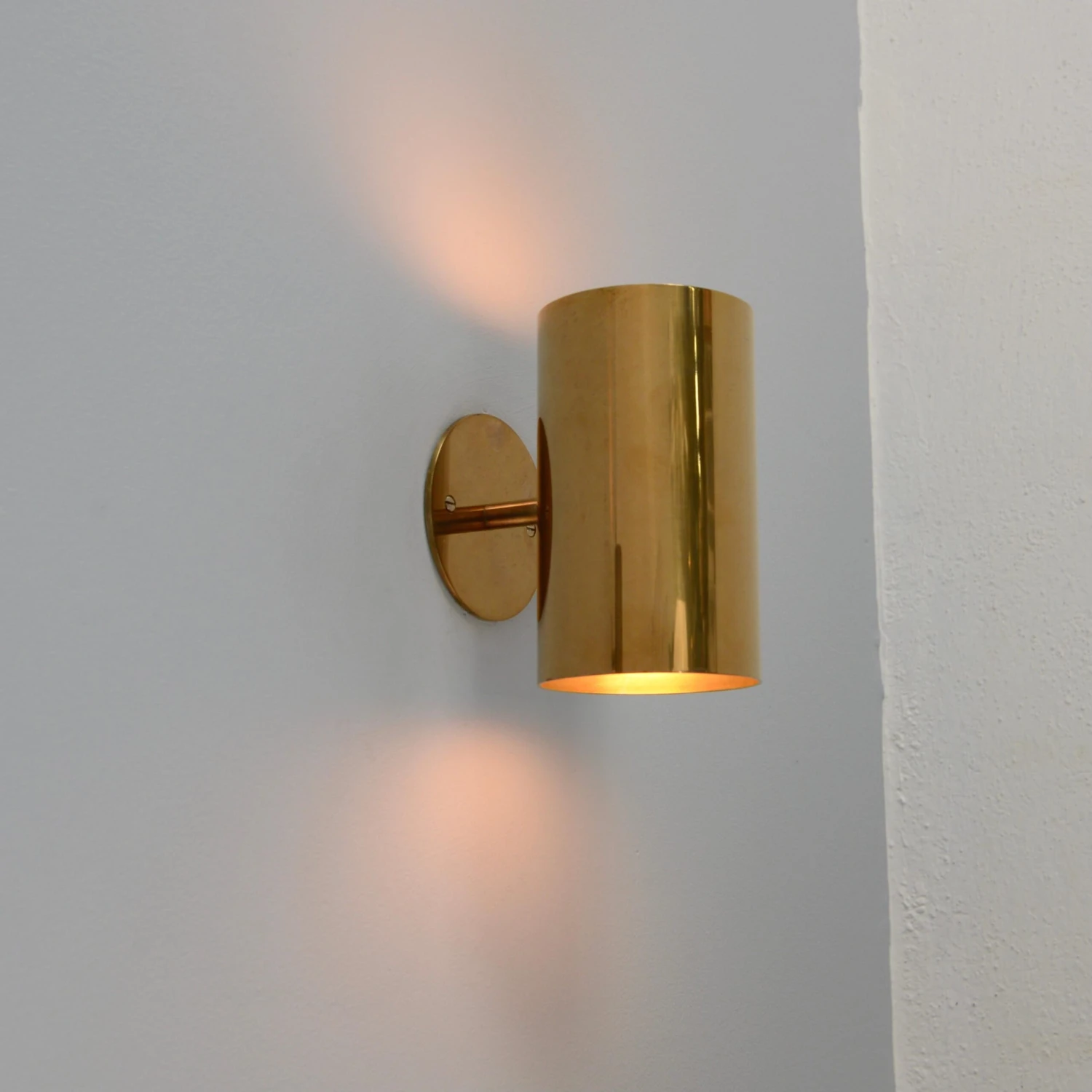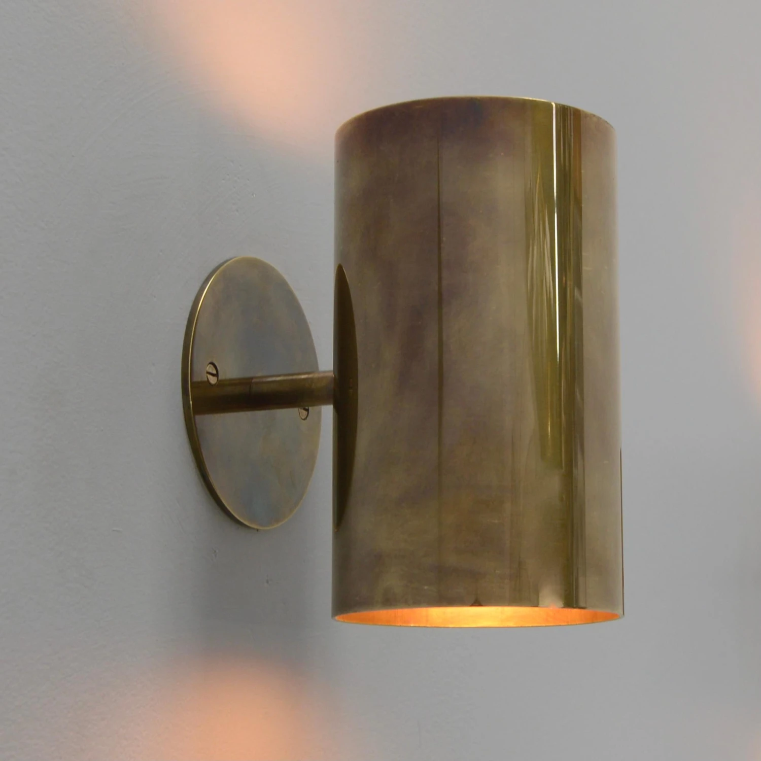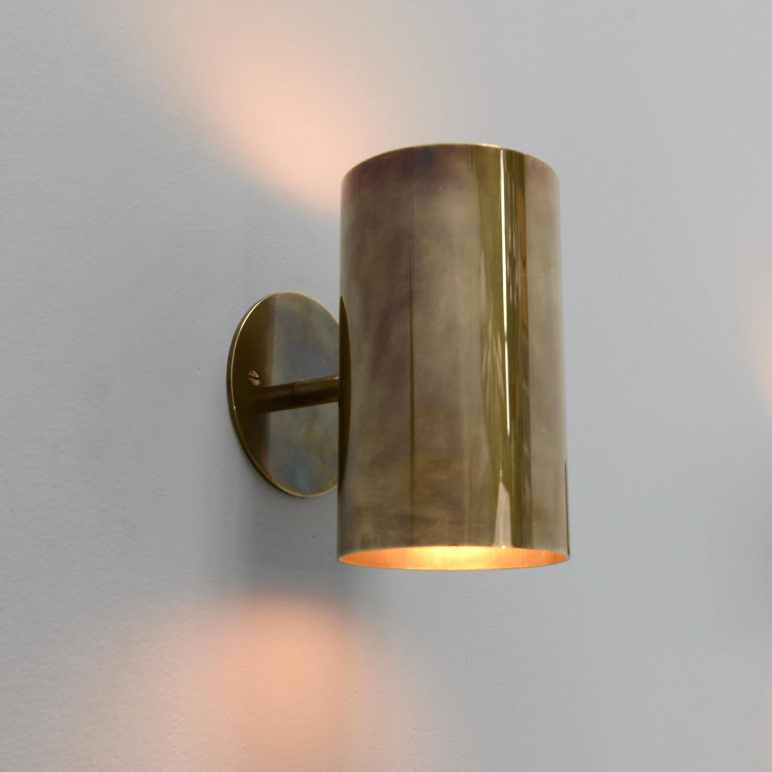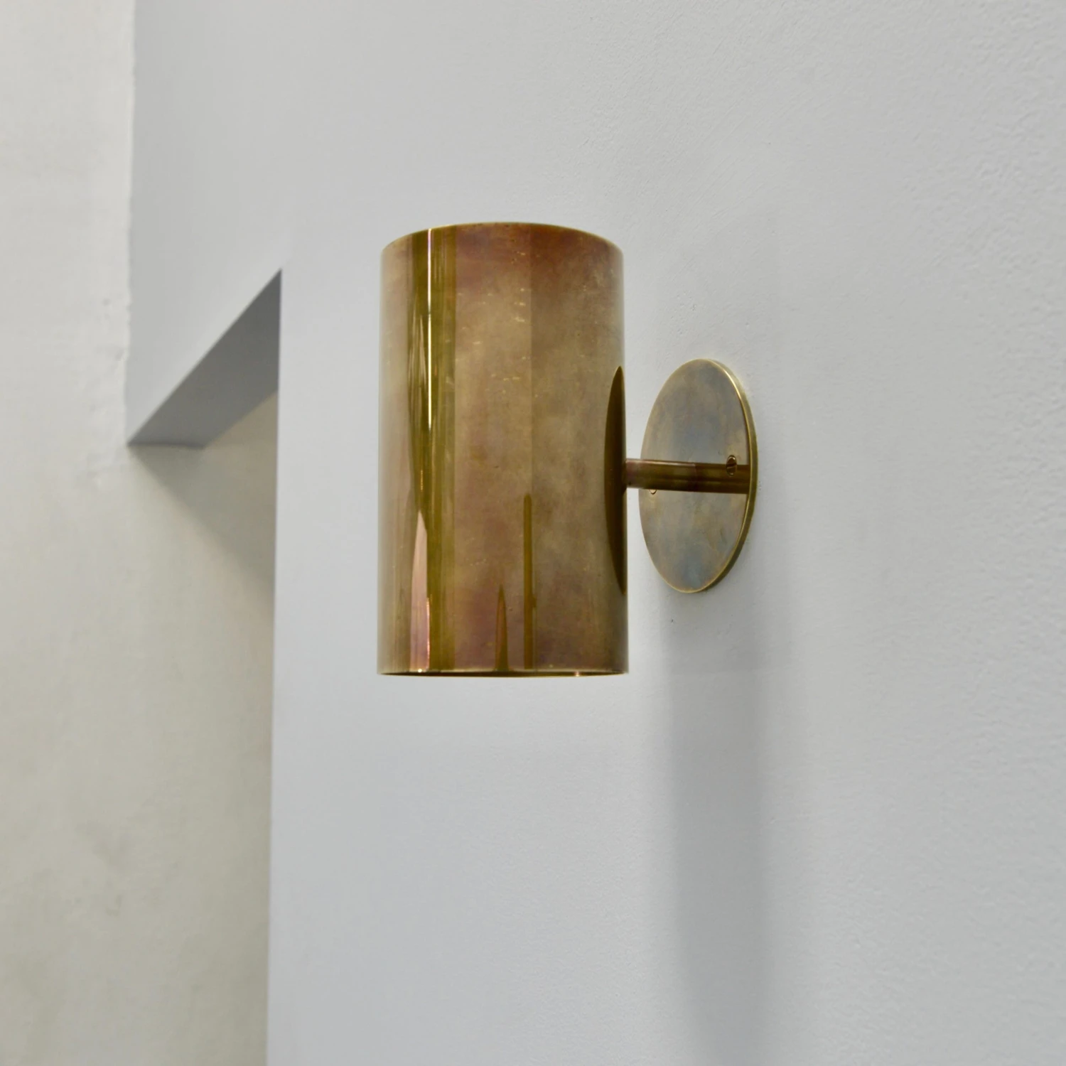 The stunning LUte sconce by Lumfardo Luminaires is an up and down fixed cylindrical wall sconce in unlacquered patinated brass or unlacquered gold finish. An all brass fixture, with illumination emitting from the top and from the bottom of the cylinder, the Lub FX Sconce is made in the USA and is part of our contemporary collection. Multiples available for order. Can be wired for use anywhere in the world. (2) E26 medium based lightbulbs included with order.