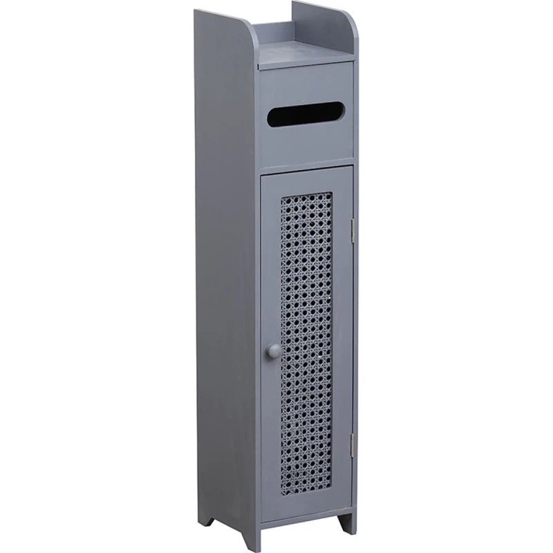 Découvrez le meuble réserve et dérouleur avec porte cannage en coloris gris.