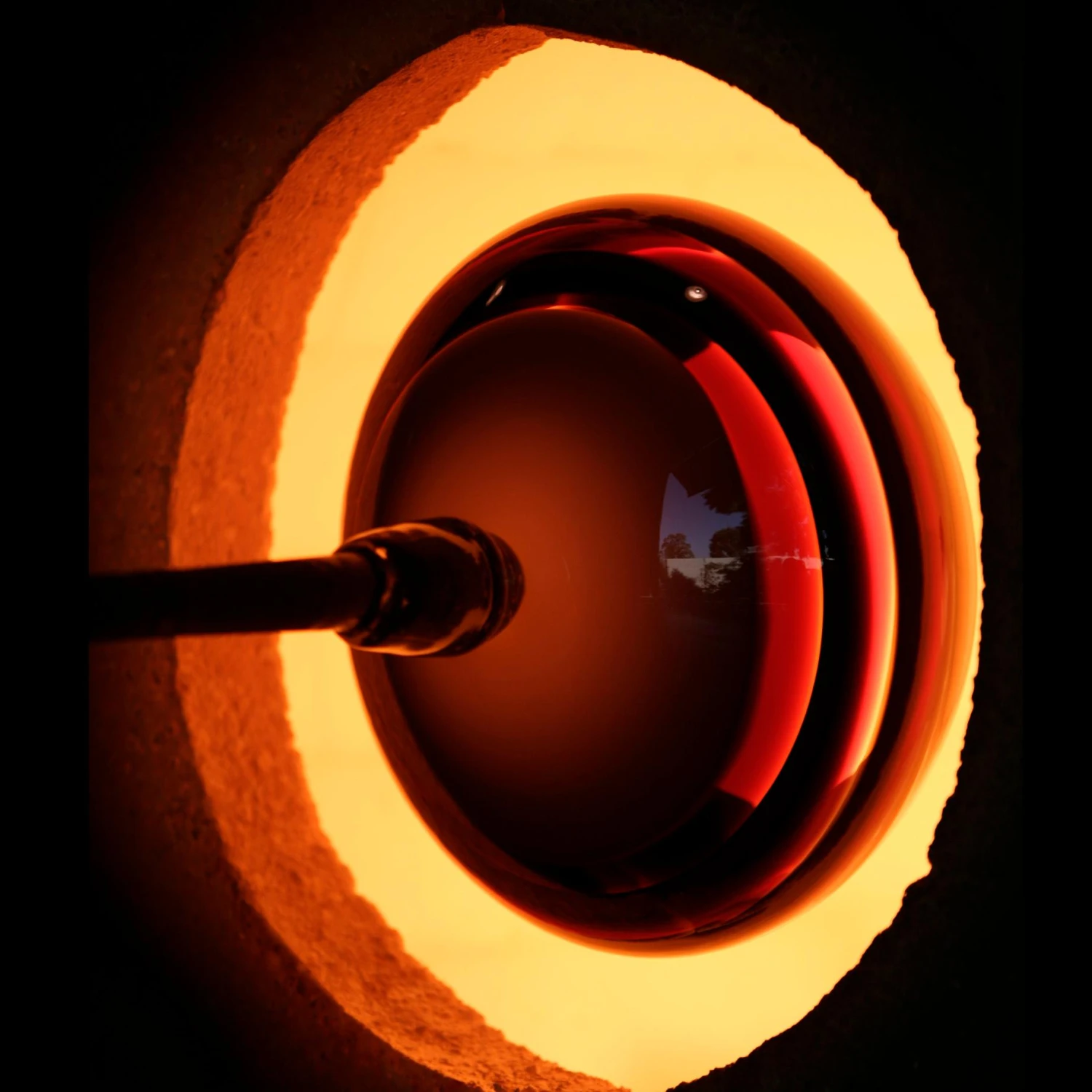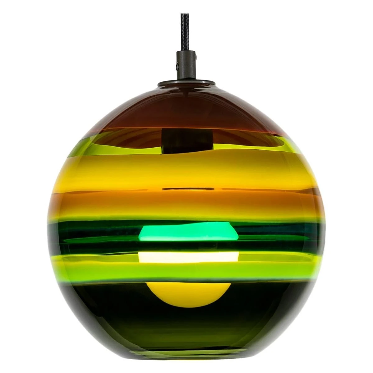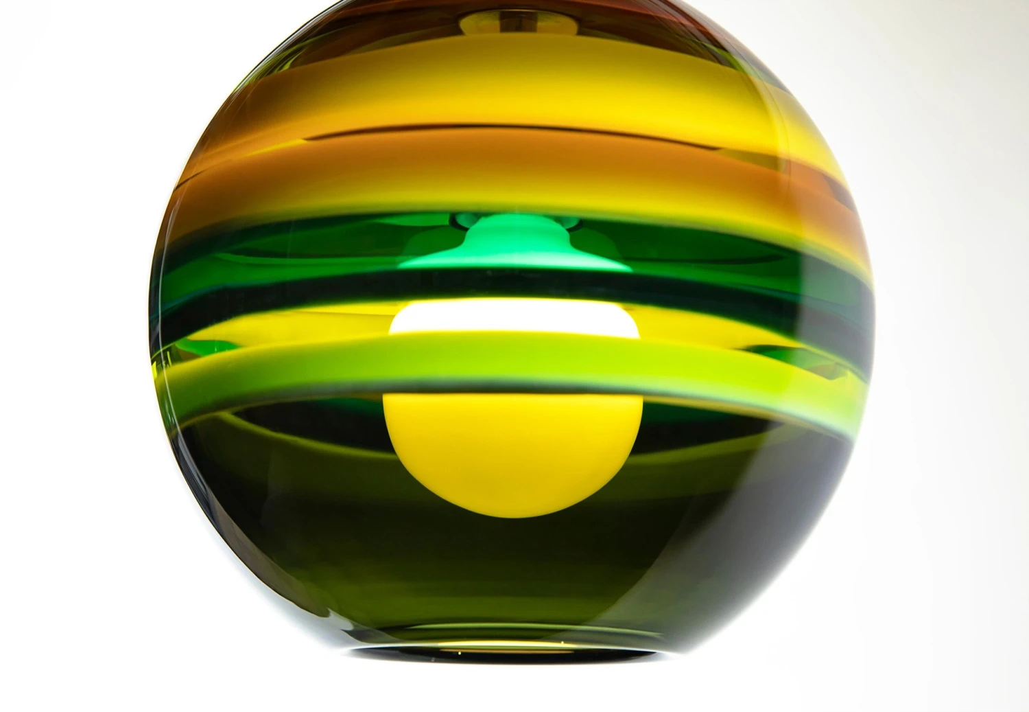 Born from a love of color, these striking pieces draw inspiration from the rich hues and undulating topography of Southern California. Alternating layers of opaque and transparent colors are applied to clear glass. Overlaps create opportunities for new colors to be formed, which adds to the depth of the pieces. The intense color is then complemented by the simple shape. Hand blown and shaped in lead free crystal. No molds are used, and each glass shape is unique. Designed and made by Siemon & Salazar in California. Signed and dated.