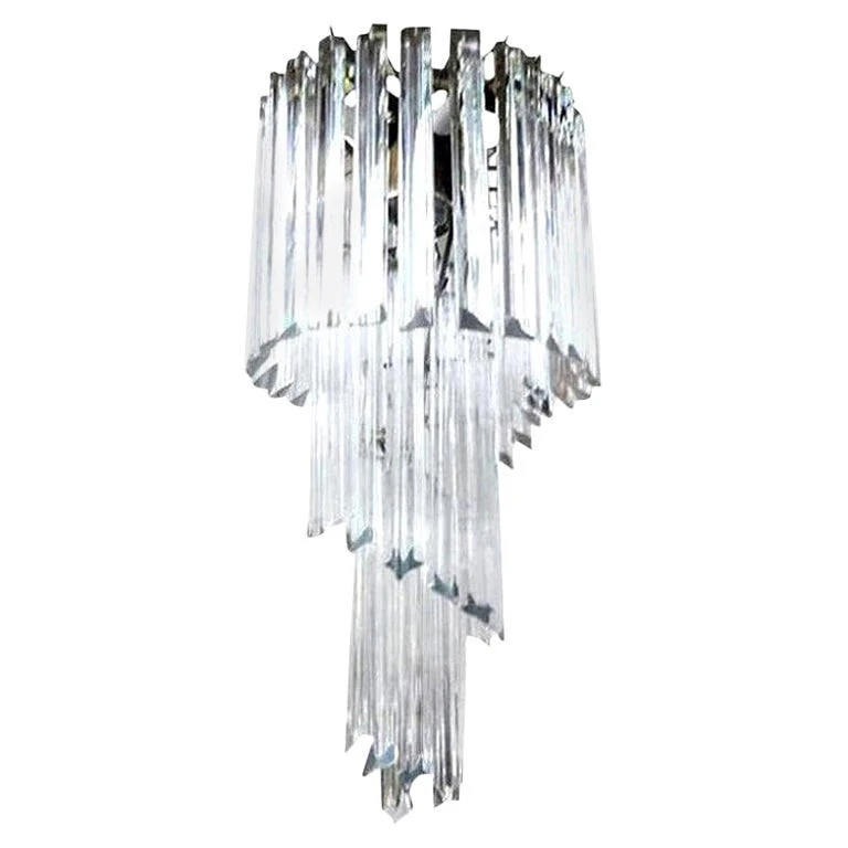 Italian midcentury Venini style Murano glass spiral chandelier or Murano lantern with clear prisms on a chrome structure. This Murano glass prism chandelier has been newly wired for U.S. market can be flush mounted for use in homes with limited ceiling heights or suspended from a chain for higher ceiling heights.