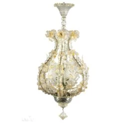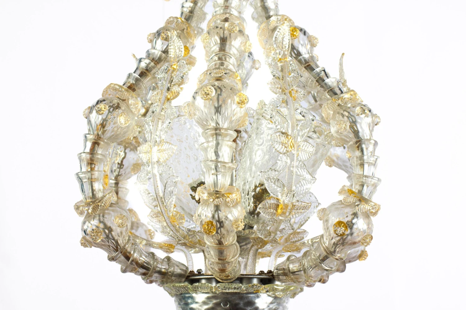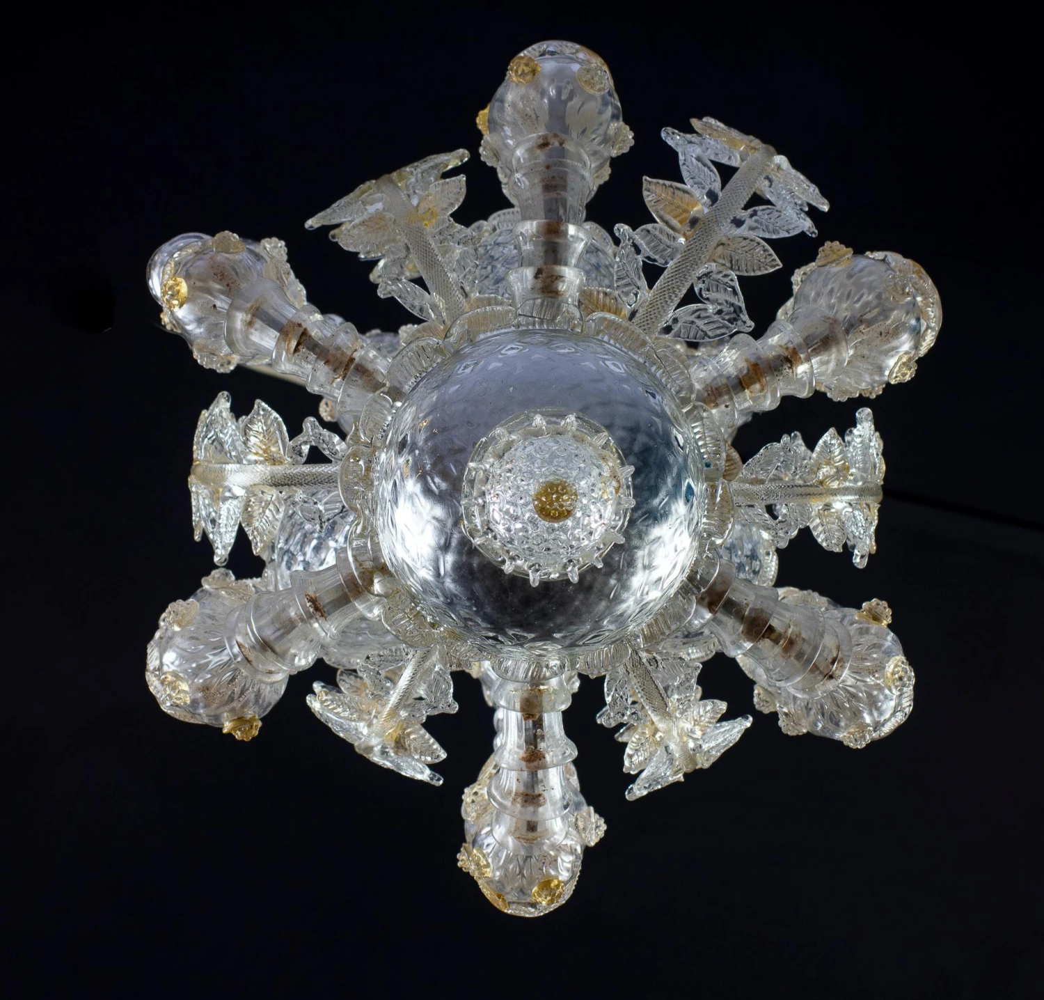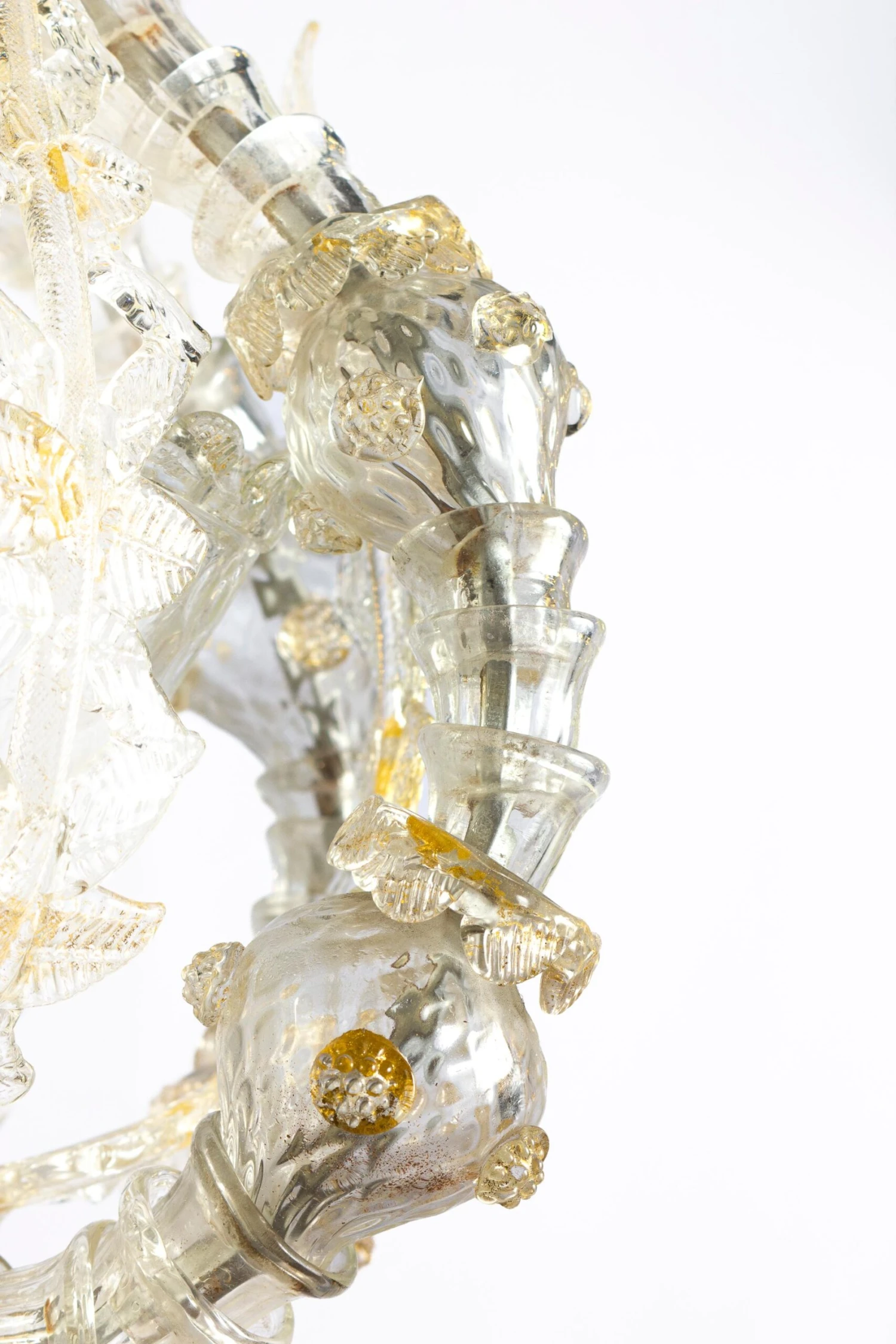Centered with three finely handblown cups. Richly decorated with leaves and flowers.