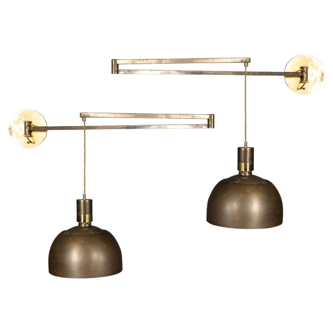 Eccentric pair of articulated wall lights made in Italy circa 1960s. These lights were designed by Franco Albini and Franca Helg and given to Sirrah Imola to manufacture. Its adjustable arm makes it possible to arrange the light partition to one’s taste. A striking and elegant pair that would look fantastic in any style of interior, whether traditional or modern.