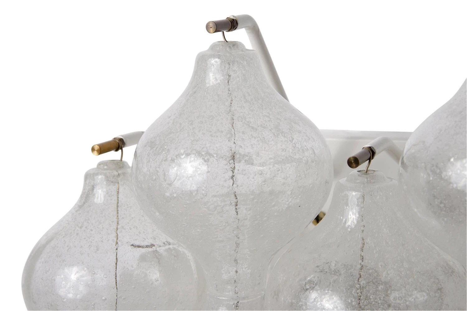 Kalmar had a cooperation with several Italian glass makers located in Murano (e.g. Mazzega, Venini) and got the glasses from there. Several other European companies like Orrefors (Sweden), Limburg and Hillebrand from Germany, and Arredoluce, Stilnovo, Fontana Arte from Italy used handblown or textured glass for their lamps in 1950s, 1960s and 1970s.
