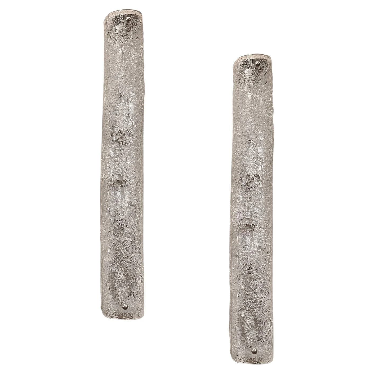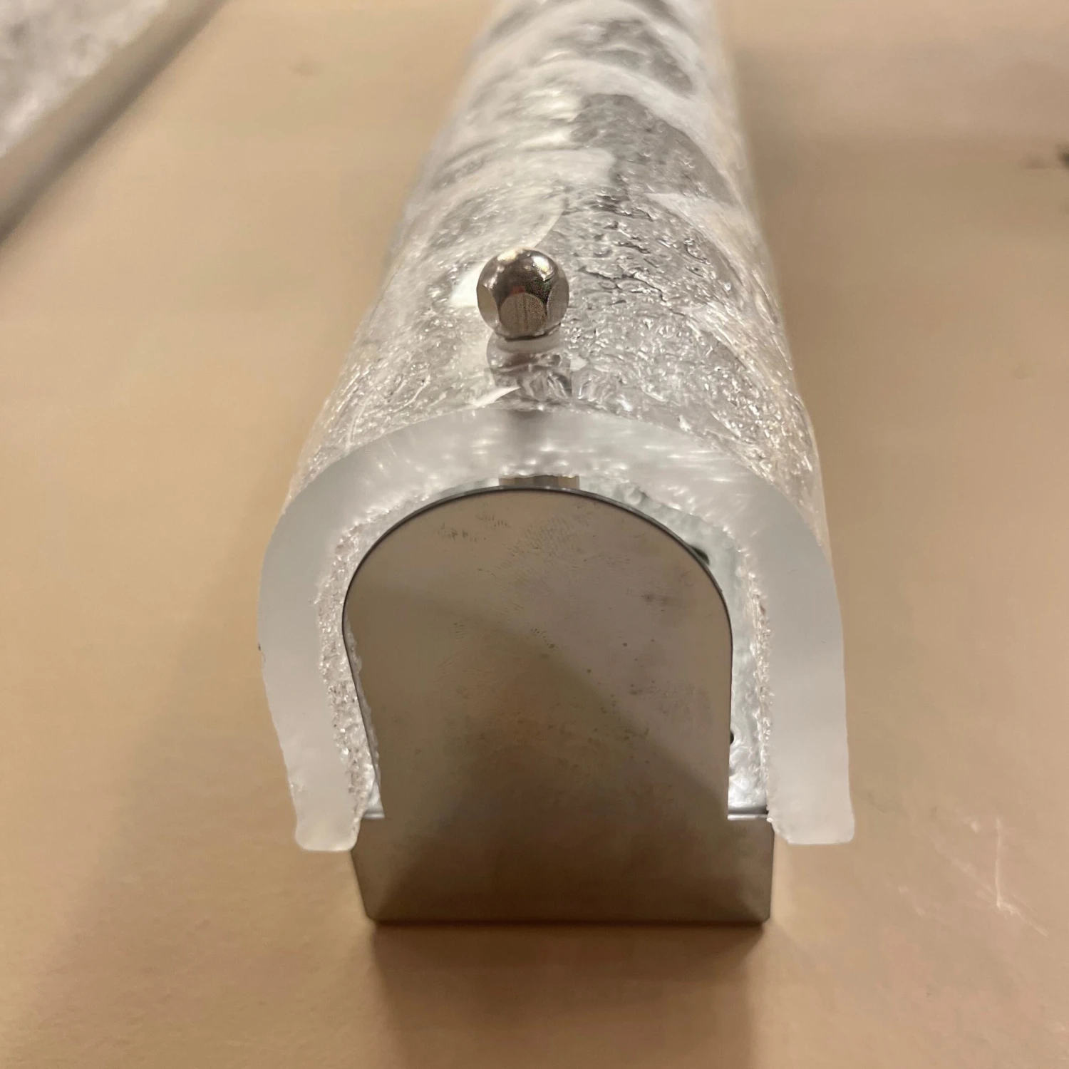 Pair of circa 1960’s Italian molded glass sconces with interior lights.