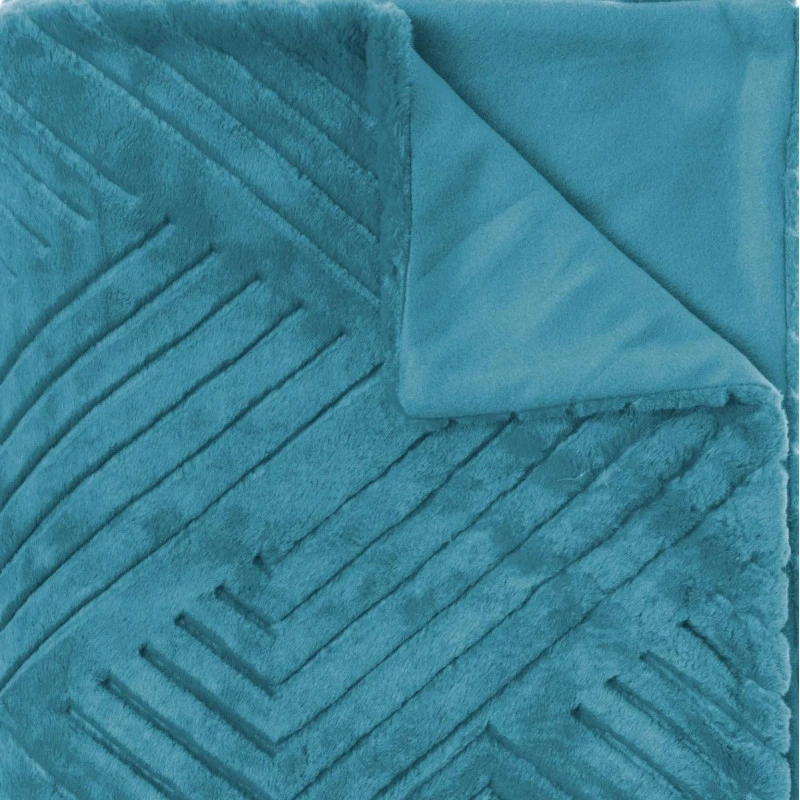 Plaid géant fausse fourrure 180×230 cm bleu canard de la marque Atmosphera.