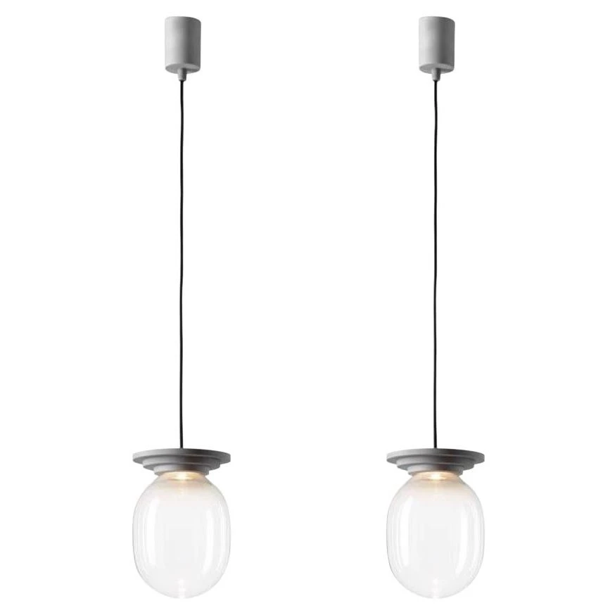 Set of 2 silver and clear stratos big capsule pendant light by Dechem Studio