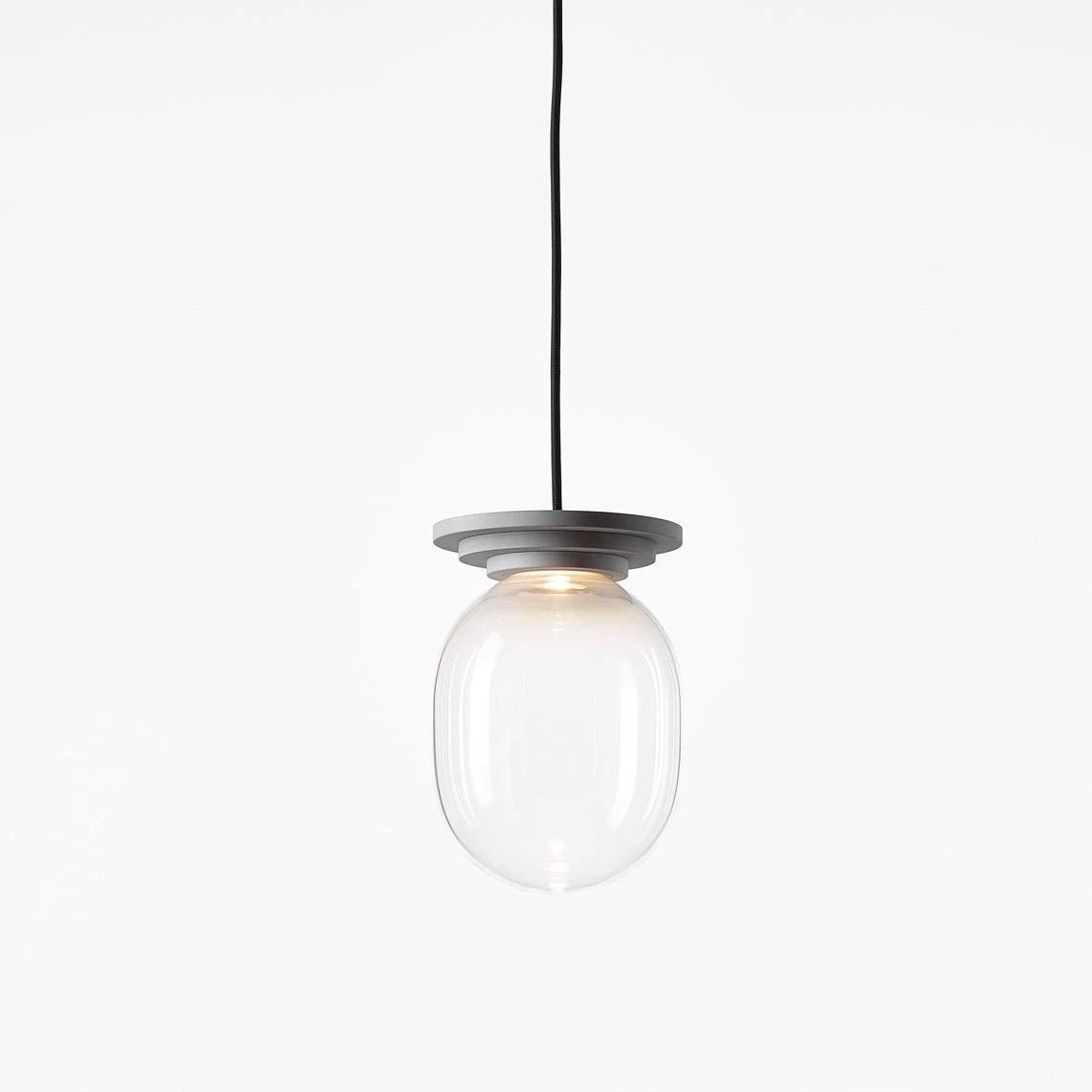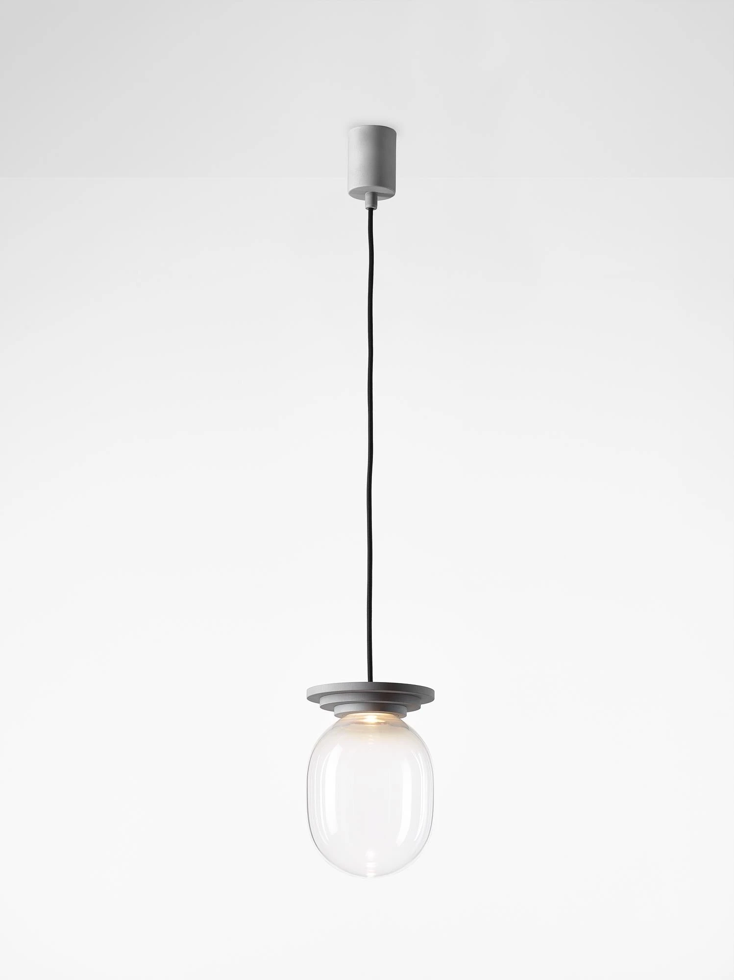 Different shapes of capsules and spheres contrast with anodized alloy fixtures, creating a surprising architectural element. The luminaires are available in various colours including crystal clear, smoke grey, alabaster white, pink, green and orange.
