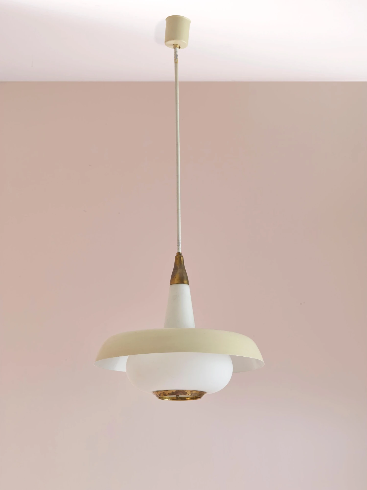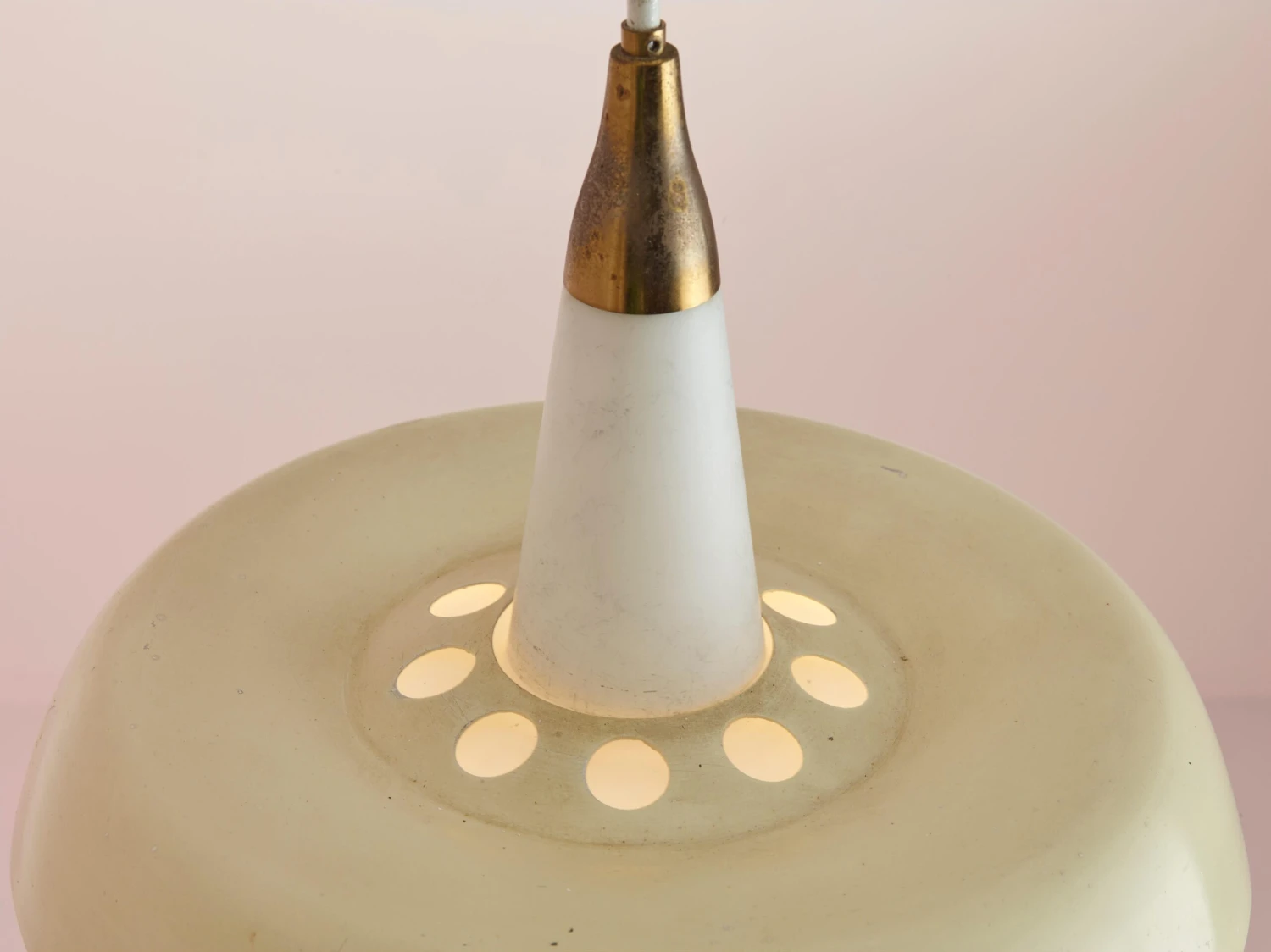 This Stilnovo pendant light would be a beautiful addition to any interior design scheme, particularly those inspired by Mid-Century Modern aesthetics. Its soft, diffused light would provide a warm and inviting atmosphere in a living room, dining area, or bedroom, while its clean lines and elegant design make it a versatile choice that can be integrated seamlessly into a range of different styles.