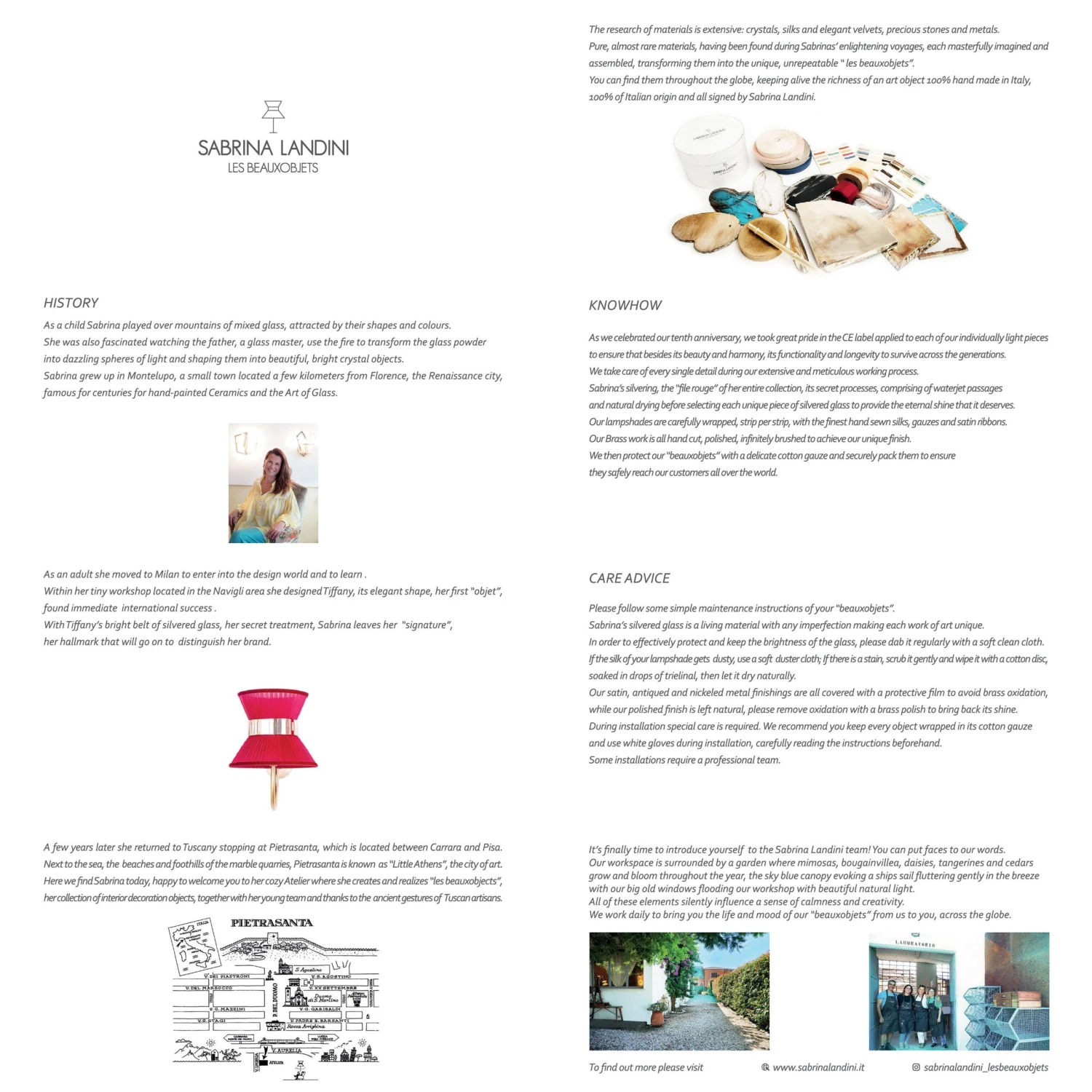 A smooth antiqued brass stem fits to perfection with the silver glass belt, a shiny eye-catching, the special silver plating treatment, masterfully performed over the years by Sabrina, confers uniqueness to the entire object, as the hallmark of the entire collection.