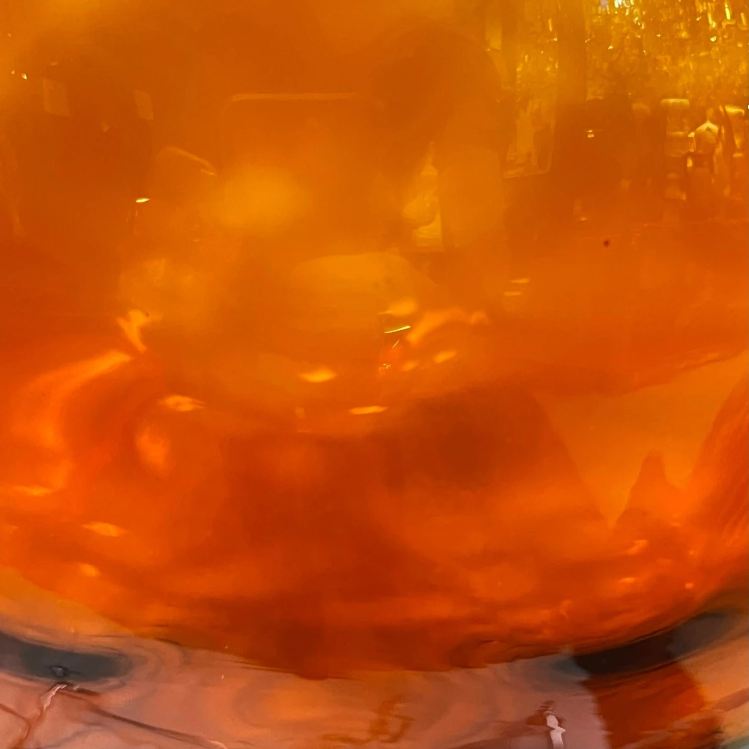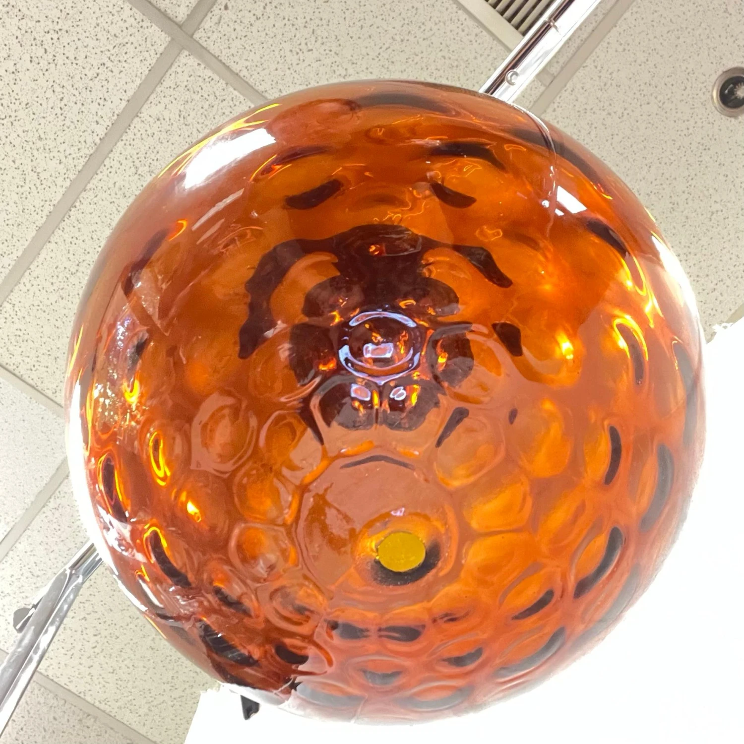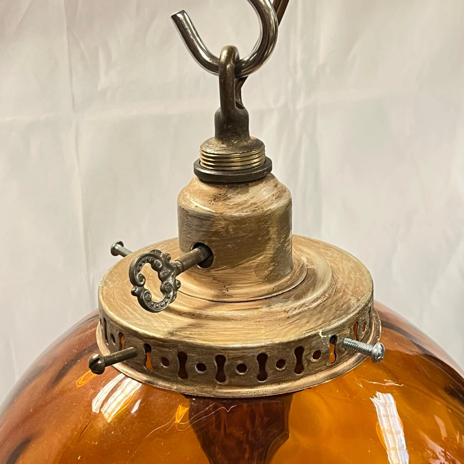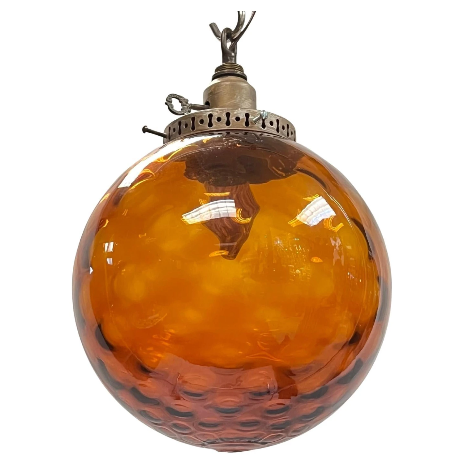 Vintage spherical amber colored glass chandelier, wired and ready for use.